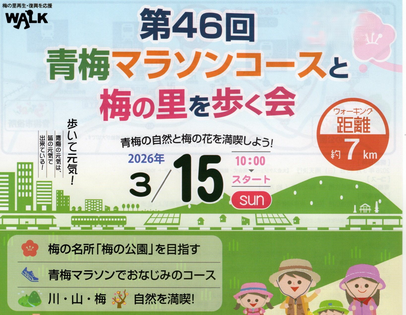第37回から青梅マラソンコースと梅の里を歩く会と名称を変え、さらにコースを一部変更して皆様をお迎えします。