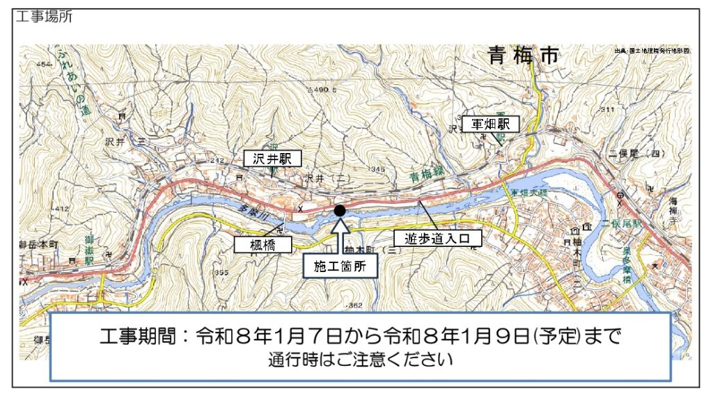 この工事に伴う通行止めはありませんが、通行の際は、ご注意ください。